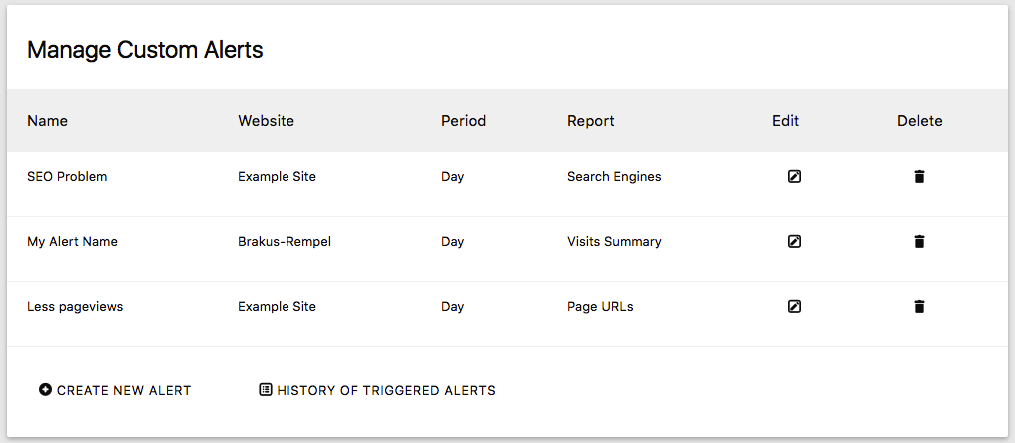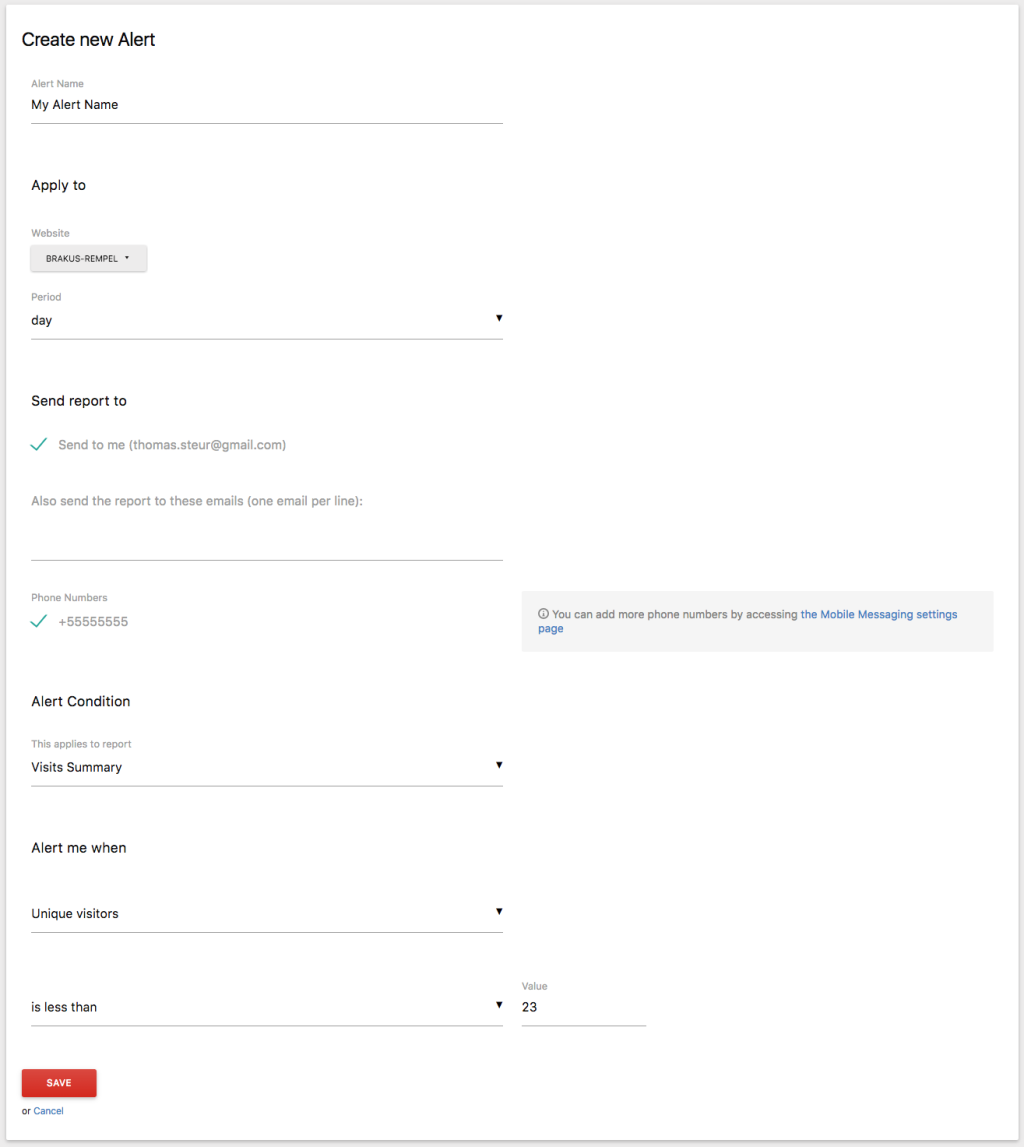 Alerts are a great way to get notified of changes on your website. Want to know if your new product hits less than 100 sales in a week or your new article attracts more than 200 visitors a day? Create alerts that make sense to you. Be notified by email, SMS or Slack when the conditions for your alerts are met. Stay on top of your website!