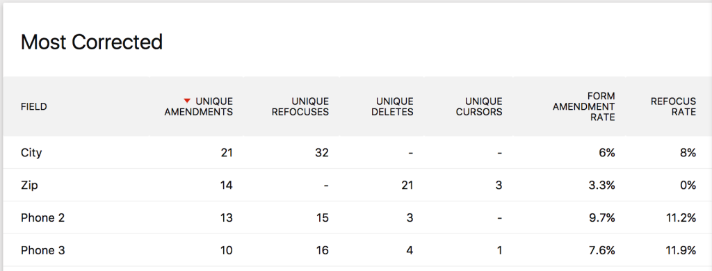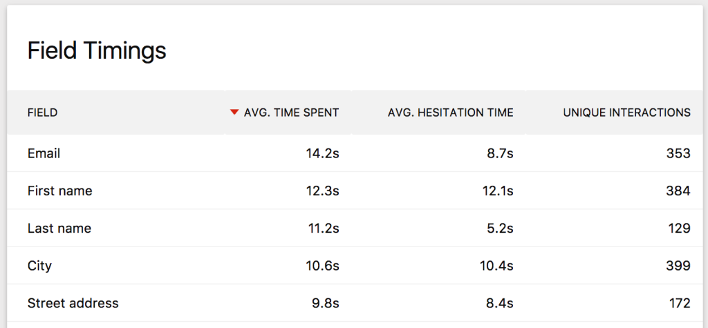 Gain crystal-clear insights into the journey of users through each form field. Discover where they begin and where hesitations occur. Track metrics like the average time spent on each field.
