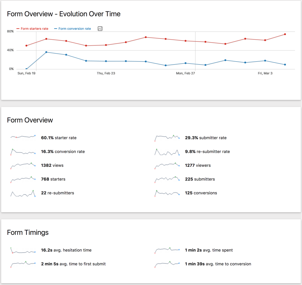 See every form metric you can think of in one simple dashboard. Identify trends and visitor behaviours, such as the time to complete a form.