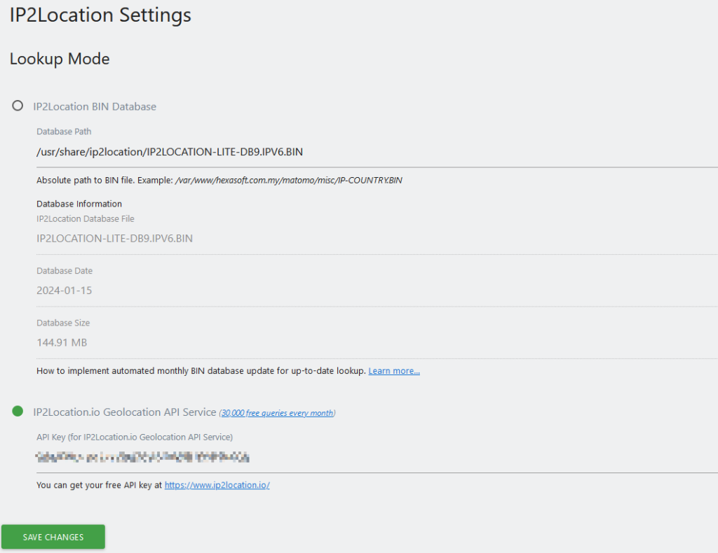Yes, please create an account from https://www.ip2location.io/ and insert your API key in the settings page.