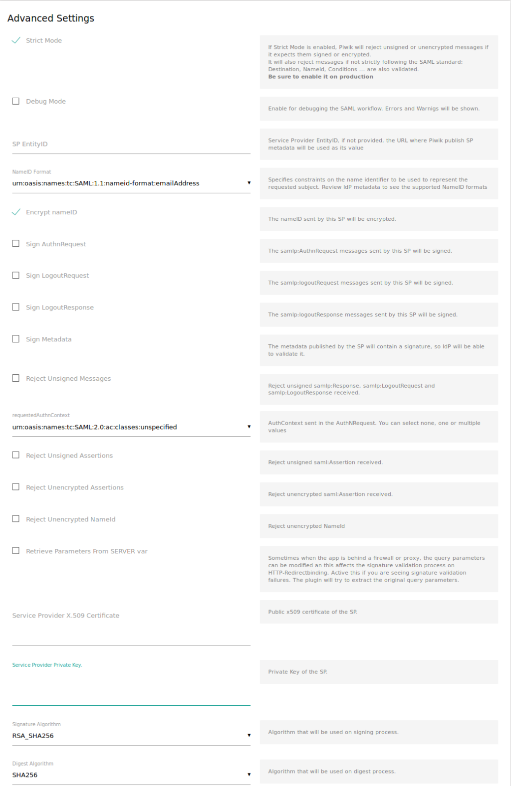Delve into Matomo's advanced SAML settings to bolster your data security. Activate 'strict mode' to ensure that only authenticated messages are processed. Tailor user identification by selecting the ideal NameID format. Use debug mode to identify and resolve problems swiftly.