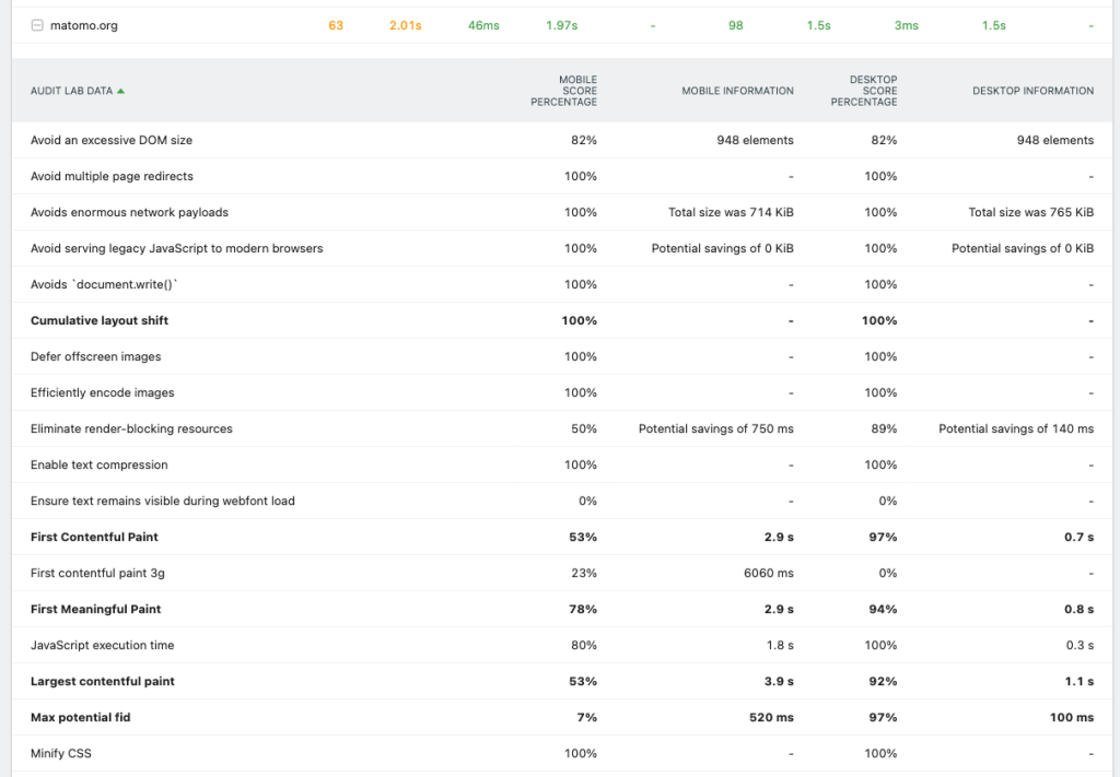 Perform thorough audits on your pages to understand the root causes of any performance hiccups. Receive a comprehensive analysis of potential issues affecting scores across desktop and mobile devices.