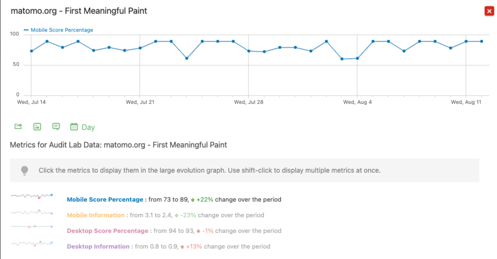 Continuously monitor the trajectory of your Web Vitals metrics, an indispensable tool for assessing the effectiveness of recent changes made to any page.