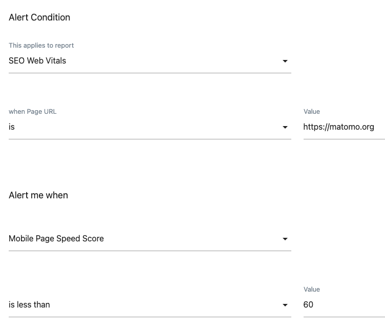 Set up custom alerts for specific pages and stay informed about any significant shifts in Core Web Vitals metrics.