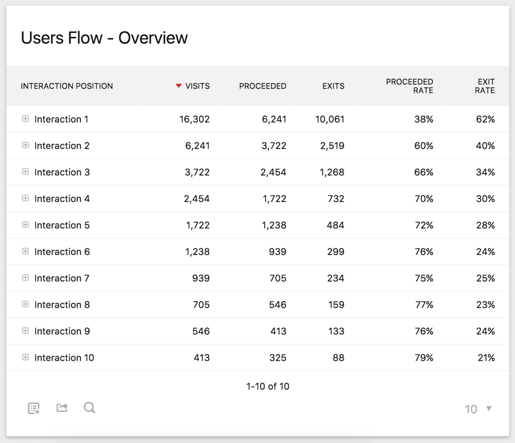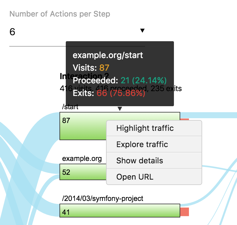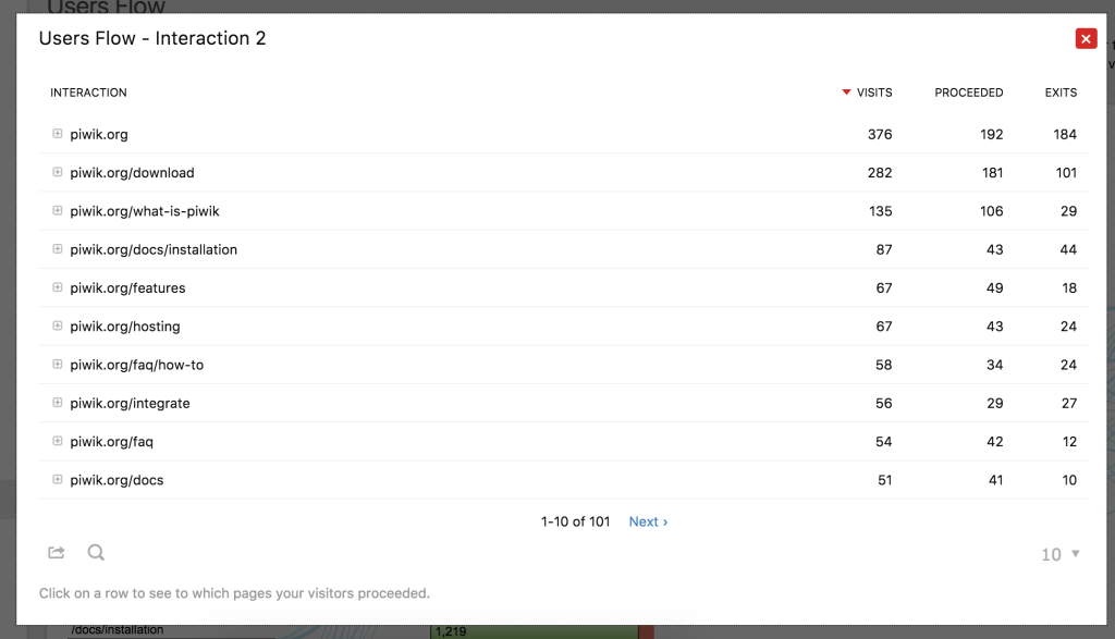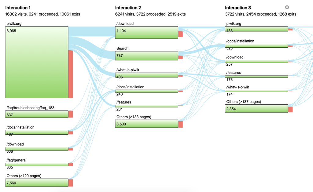 • For each interaction step, get insights into over 100 pages and for each of those pages see where they went to from that page