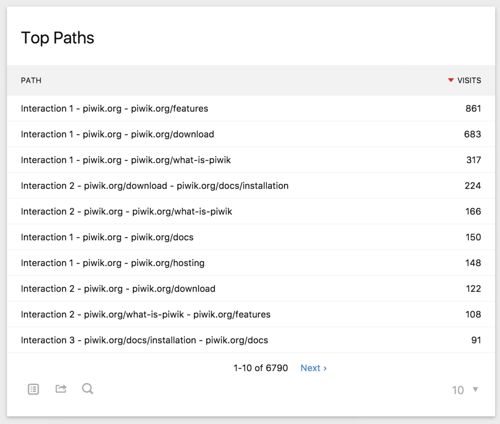 Discover which paths and interactions resonate most with your visitors with the "Top Paths" report.